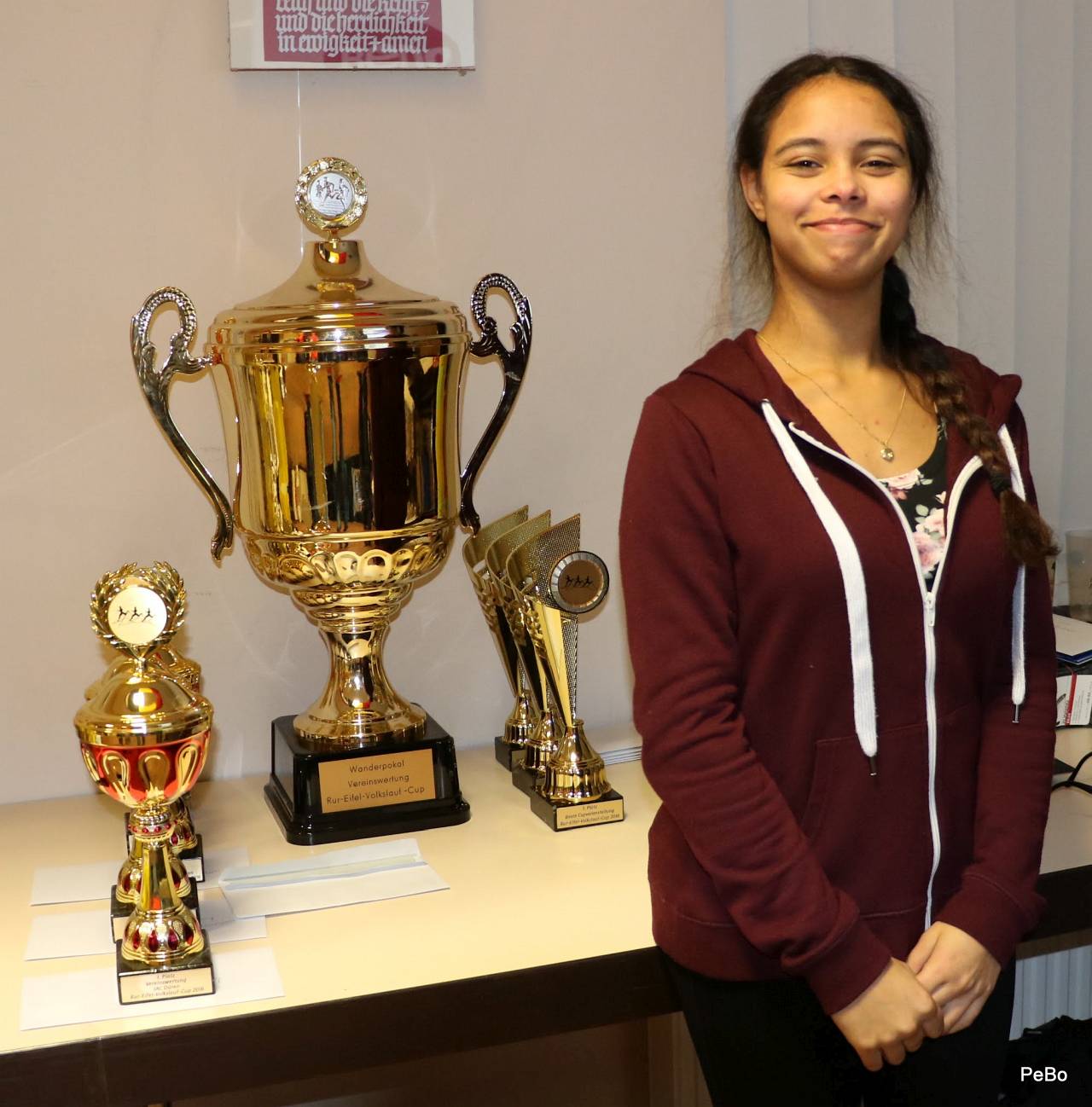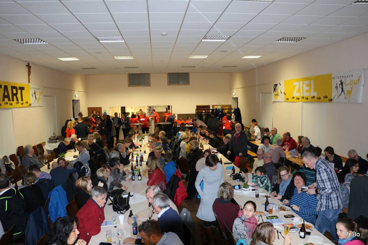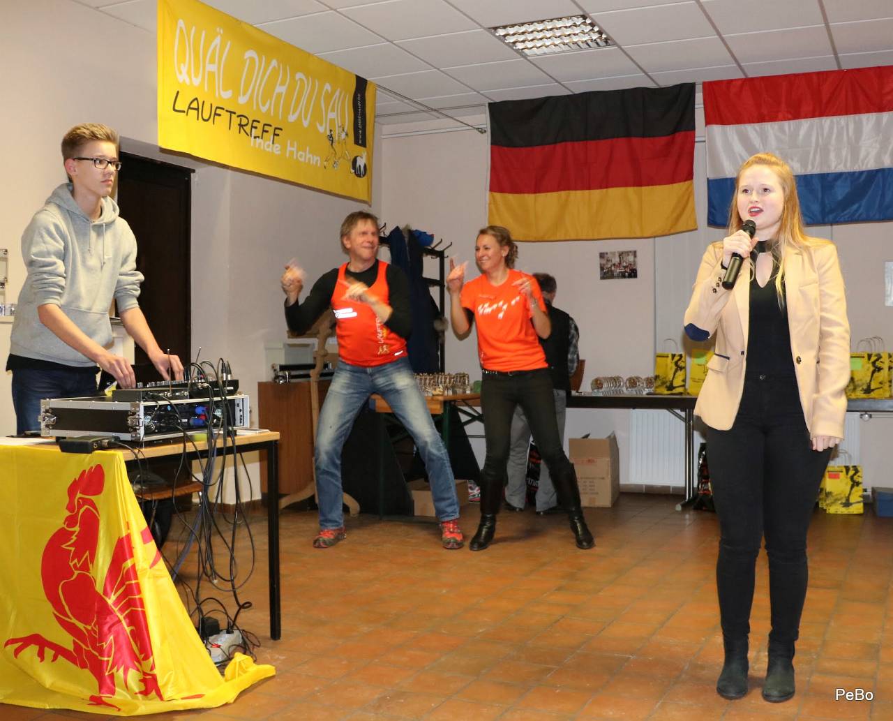 Am vergangenen Samstag hatte unser Lauftreff jede Menge Besuch in Hahn. Im Hahner Pfarrheim wurde die Siegerehrung des Rur-Eifel-Volkslauf-Cups 2016 gefeiert – erstmals organisiert durch unsere Laufabteilung. Die knapp 200 besten Läufer der Laufserie wurden an diesem Abend geehrt und mit den verdienten Pokalen und Urkunden und großem Applaus belohnt – mindestens 10 der insgesamt 38 REC-Läufe musste man dafür absolviert haben. Etwa 25 Helfer in den typischen orangen Shirts sorgten für den reibungslosen Ablauf und die beiden Moderatoren Andrea (alias Küken) und Dirk (alias Gute-Laune-Onkel) hielten die Gäste mit locker-flockigen Sprüchen bei Laune und unterstützten so Paul Boltersdorf, den Chef der beliebten Laufserie, die im letzten Jahr insgesamt 11000 Läufer zu ihren Veranstaltungen locken konnte. Wie immer bei solchen Gelegenheiten hatte Peter Borsdorff, der Läufer mit der Sammelbüchse, auch an diesem Abend seinen Auftritt – er berichtete über den aktuellen Gesamt-Spendenstand seiner Aktion „Running for kids“, der mittlerweile die 1,5-Millionen-Marke überschritten hat, und über die anstehenden Projekte, die wie immer bedürftigen Kindern zugute kommen werden. In der Pause sorgte eine junge Nachwuchssängerin für gute Stimmung, die schließlich sogar dazu führte, dass etliche der anwesenden Läufer einfach mitsangen. Am italienischen Buffet und an der Theke konnte man zwischendurch Hunger und Durst stillen, so dass die knapp vierstündige Veranstaltung allen Gästen riesengroßen Spaß bereitete. Die Lobhudelei wollte anschließend und auch an den folgenden Tagen kein Ende nehmen. Viele Gäste würden die Siegerehrung am liebsten auch im kommenden Jahr wieder in Hahn sehen – warum eigentlich nicht?