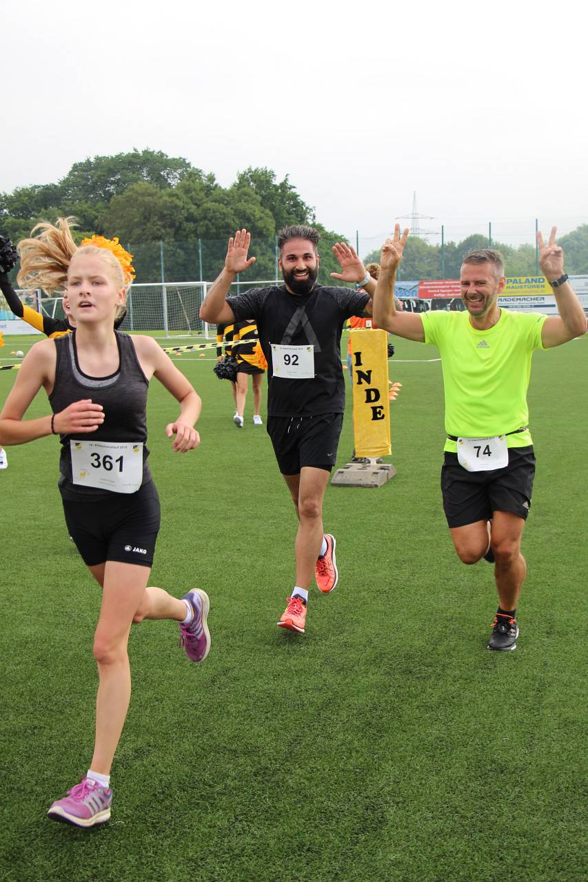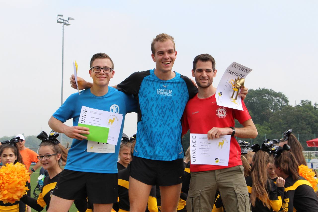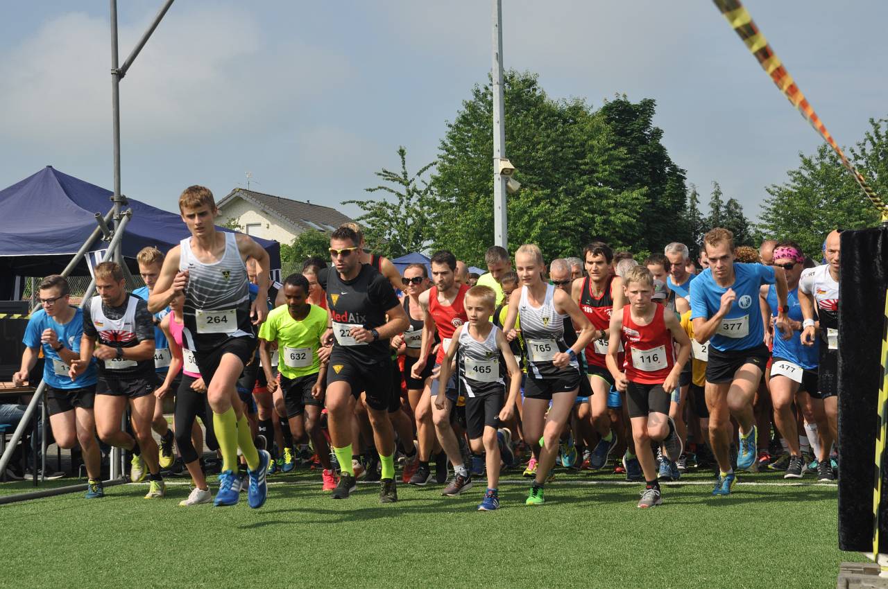 Wie immer machten die 4,2-km-Läufer den Anfang. Von Jahrgang 1928 (!!!) bis Jahrgang 2008 waren alle Altersklassen vertreten – bei unserem kurzen Volkslauf messen sich gerne die Kleinen mit den Großen. Mit 195 Läufern kamen so viele wie nie auf dieser Strecke ins Ziel (Finisher nennt man das in Fachkreisen gerne) und am Ende durfte man sich über einen fantastischen Streckenrekord freuen. Bereits zum vierten Mal trug sich Jorrit van der Raadt (STAP Brunssum) in die Siegerliste ein und er verbesserte seine eigene Strecken-Bestmarke von 13:51 um unglaubliche 42 Sekunden auf 13:09. Bei der Anzahl der Siege zog er damit mit Tobias Hibbe gleich, der diesen Lauf ebenfalls viermal gewinnen konnte. Es wird sicher schwer, diese Leistung im kommenden Jahr noch einmal zu toppen, doch wie wir Jorrit kennen wird er es definitiv wieder versuchen. Natürlich hatte er im Ziel einen größeren Vorsprung, so dass es fast 90 Sekunden dauerte bis Patrick Vonderhagen (SV Germania Dürwiss) ihm über die Ziellinie folgte. Platz 3 belegte Jorrits „kleiner“ Bruder Jesse van der Raadt (STAP Brunssum) mit einer Zeit von 15:11. Nur wenig später erreichte auch die schnellste Dame das Ziel: die 16-jährige Sonja Vernikov (Alemannia Aachen) wiederholte ihren Sieg von 2016 und verpasste mit ihrer Zeit von 15:46 den im vergangenen von Claudia Valdiz aufgestellten Streckenrekord nur hauchdünn – bei ihrer aktuellen Entwicklung darf man hoffen, dass sie im kommenden Jahr richtig auf Rekordjagd gehen wird. Platz 2 der Damenwertung belegte Sarah Kirner (DJK Jung Siegfried Herzogenrath) vor Annika Niederau (Raspo Brand). Schnellster Hahner Läufer war Mika Olbertz mit einer Zeit von 19:37.