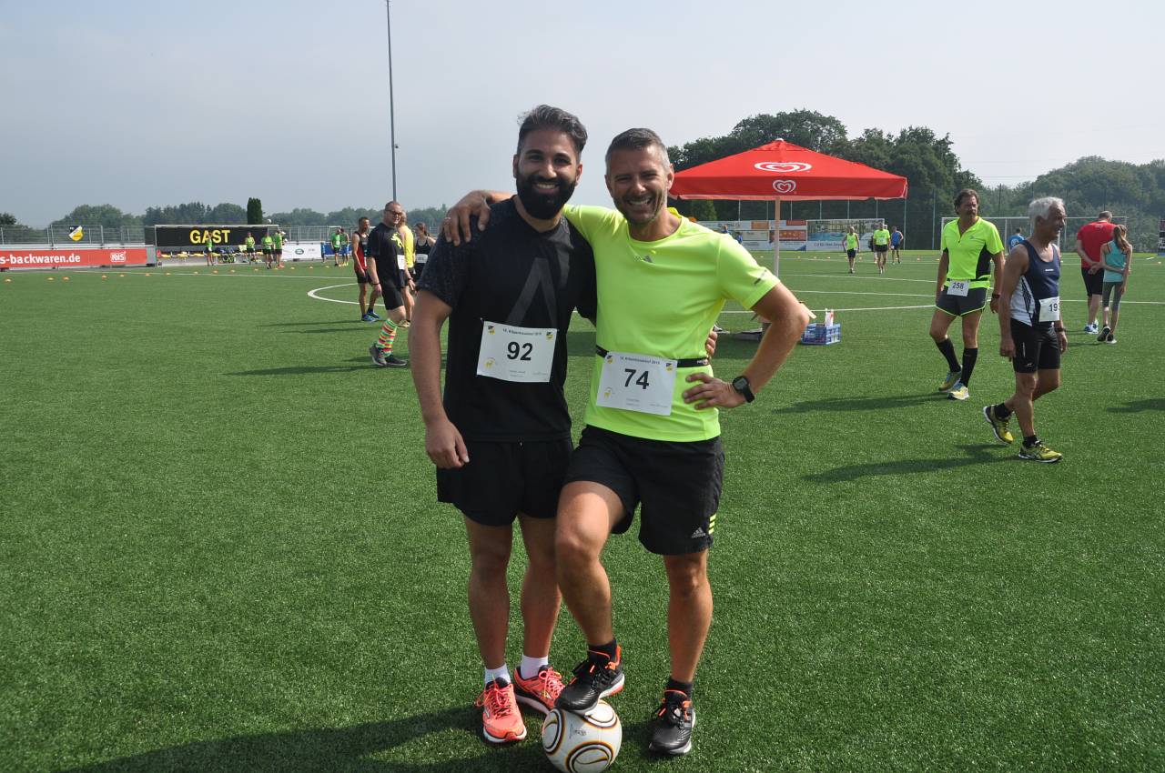Ein in Hahn immer besonders gern gesehener Gast ist Peter Borsdorff, der mit seinem Projekt „Running for kids“ seit vielen vielen Jahren laufend unterwegs ist, immer wieder neue Aktionen zugunsten bedürftiger Kinder unterstützt und bei fast keiner Laufveranstaltung im Grenzland fehlt. Ihm haben wir wie üblich einen besonders dicken Batzen in seinen Sammelschuh gesteckt – wie schon im vergangenen Jahr aufgestockt durch den Förderkreis des FC Inde Hahn. Bei allem sportlichen Ehrgeiz ist uns das soziale Engagement sehr wichtig und da ist Peter in der Läuferszene der allererste Ansprechpartner!