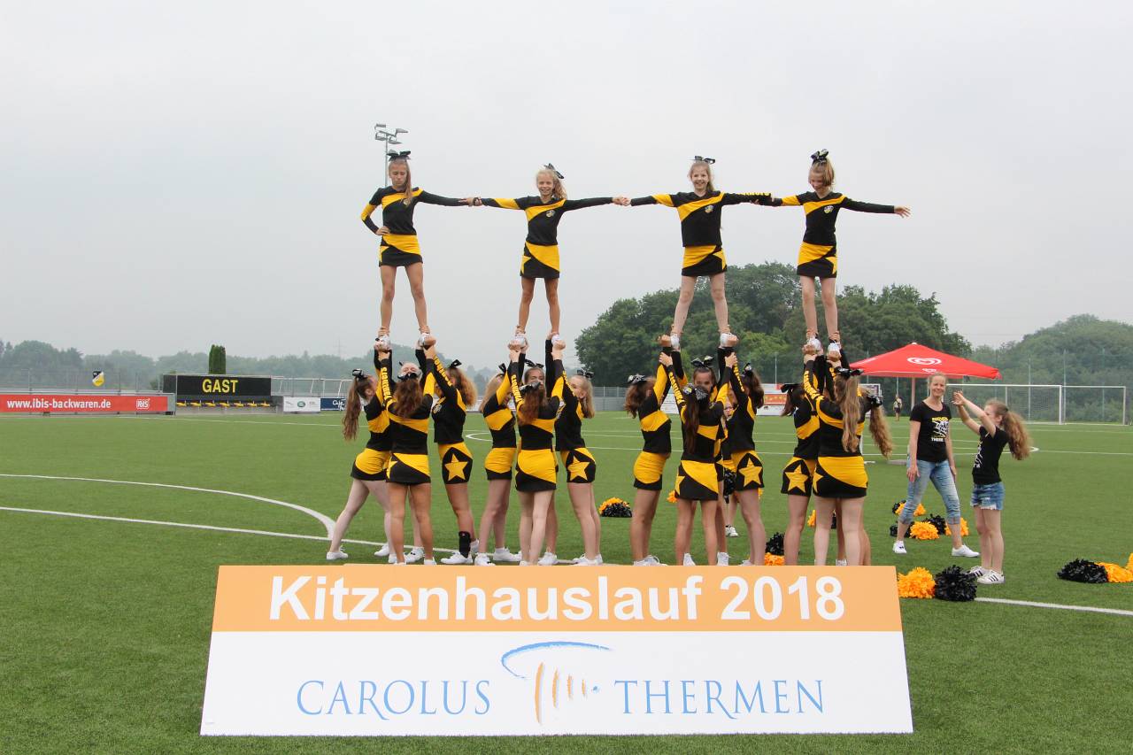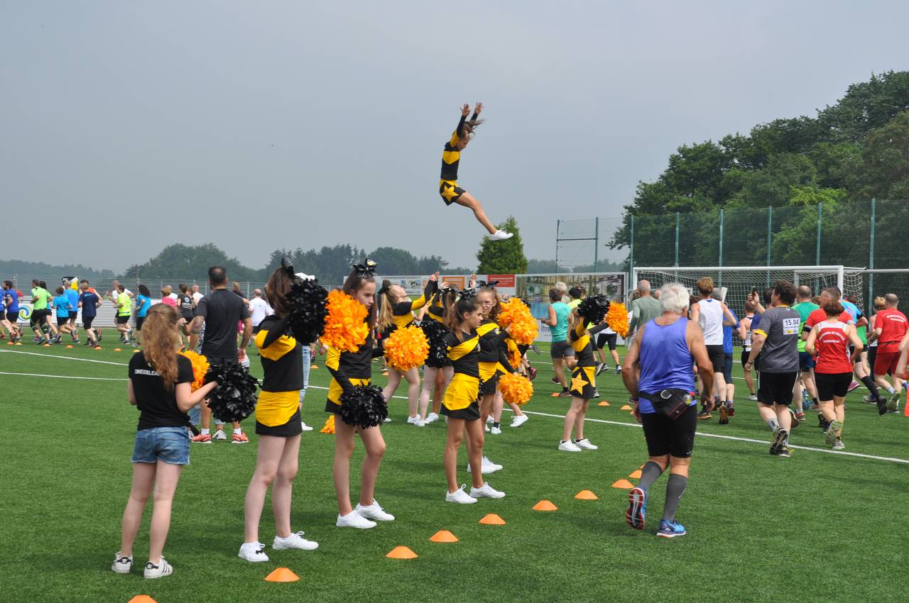 Richtig sehens- und hörenswert war auch wieder der Auftritt unseres Cheerleader-Teams, das jeden Läufer und Walker (vom Ersten bis zum Letzten) lautstark angefeuert hat und dem Publikum obendrein tolle Stunts und Choreografien zeigen konnte. Hier war wieder deutlich zu sehen, wie rasant die Entwicklung dieser Gruppe in den letzten Monaten verläuft.