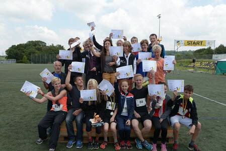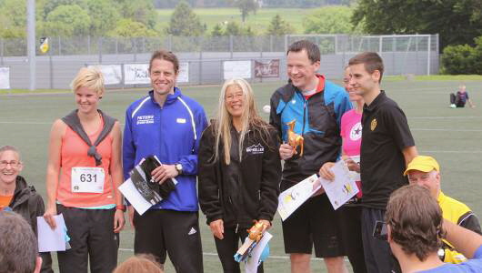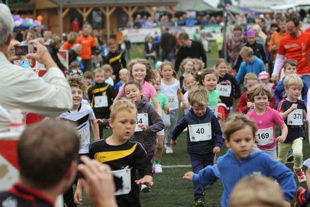 Besonders sehenswert waren auch wieder der Schülerlauf über 1000 Meter und der Bambinilauf über 300 Meter, in denen die Nachwuchsläufer wieder zeigen durften, dass man auch mit etwas kürzeren Beinen schon richtig tolle Leistungen zeigen kann. Während beim Schülerlauf schon Zeiten gelaufen werden, mit denen viele Erwachsene große Probleme hätten, dominiert bei den Bambini der Spaß an der Sache und der Stolz auf die eigene Leistung und die dafür umgehängte Goldmedaille.