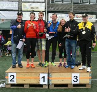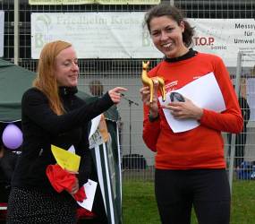 Bei den Damen konnte Eva Offermann (DJK JS Herzogenrath) ihren Vorjahrestitel verteidigen. Mit einer Zeit von 15:53 ließ sie die Konkurrentinnen deutlich hinter sich. Zweite wurde die erst 12-jährige Jana van Megeren (Aachener TG) mit einer für diese Altersklasse sensationellen Zeit von 17:41. Und auch auf dem dritten Platz landete mit Michelle Jansen (LG Mützenich) eine junge Nachwuchsläuferin. Im Wettkampf zwischen Groß und Klein waren die Kleinen also diesmal nicht chancenlos !!!