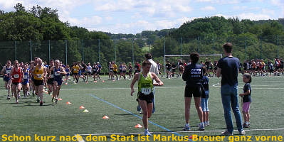 Der Kitzenhaus-Lauf 2007 war in vielerlei Hinsicht rekordverdächtig. Nie zuvor waren so viele Läufer am Start (insgesamt 360 Teilnehmer), nie zuvor war das Wetter so gut und noch nie waren die Läufer so schnell wie in diesem Jahr! Doch in erster Linie zählte für die allermeisten Teilnehmer der Spaß an der Sache und davon gab es beim Kitzenhaus-Lauf mal wieder reichlich. Daran konnte auch eine Herde von 1300 Schafen , die ausgerechnet zu dieser Zeit auf unserer Laufstrecke unterwegs war, nichts ändern. Der Start des 10-km-Laufes musste wegen diesen unangemeldeten Teilnehmern zwar um gut 20 Minuten verschoben werden, doch fast alle Läufer nahmen dies mit einem Schmunzeln hin – schließlich sind es ja gerade solche Läufe, an die man auch in zwei Jahren noch gerne zurück denkt. Ansonsten waren die Bedingungen aber ganz hervorragend – Temperaturen knapp unter 20 Grad, kein Regen und wenig Wind ließen schon vor dem Start gute Leistungen auf unseren bekannt schönen Laufstrecken zwischen Hahn, Friesenrath und Venwegen erwarten. Und diese Erwartungen wurden nicht enttäuscht.