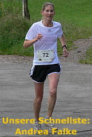 Markus Breuer gewann den 10-km-Lauf mit neuer Streckenrekord-Zeit von 34:29 – in Anbetracht des hügeligen Streckenprofils eine sensationelle Zeit für den Mann von Bergwacht Rohren! Hinter ihm landeten Helmut Kaulen (DTV Düren) und der Niederländer Jean-Pierre Dieteren aus Bunde auf den weiteren Podestplätzen. Unsere Freunde vom TSV Solingen, die schon seit Jahren immer vorne dabei sind, mussten diesmal mit den Plätzen 4-6 und 9 zufrieden sein, konnten sich aber immerhin über vier Altersklassen-Siege freuen. Auch die Damen waren wieder richtig schnell und besonders die Eifelerinnen taten sich dabei hervor: als Erste kam die Vorjahreszweite Irmy Brandenburg vom SV Kalterherberg mit einer tollen Zeit von 41:14 ins Ziel. Auf dem zweiten Platz landete „Langstrecken-Spezialistin“ Marion Braun von Germania Eicherscheid. Dritte wurde Claudia Schwan, ebenfalls aus Eicherscheid, die nur knapp vor unserer schnellsten Hahner Läuferin, Andrea Falke, die Ziellinie überquerte.