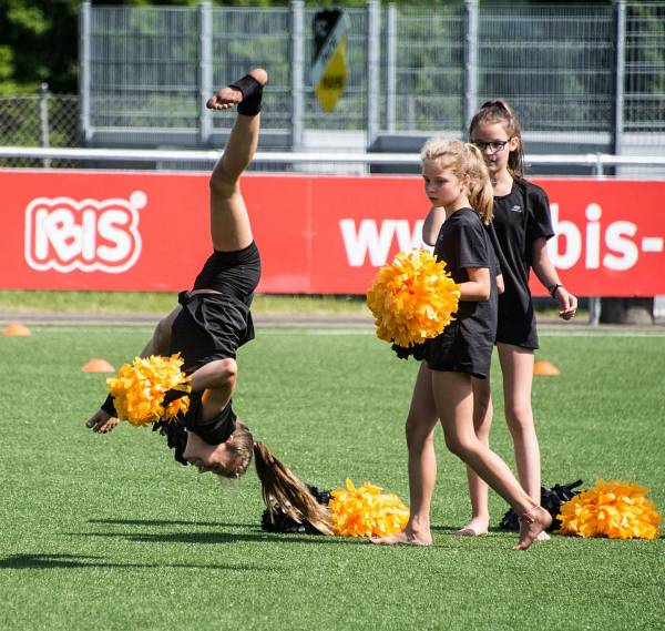 | Wissenswertes: | Im Juni 2016 fand sich erstmals eine Gruppe von Mädels aus Hahn und Breinig zusammen, um beim Hahner Kitzenhauslauf für Stimmung zu sorgen und die Läufer lautstark und mit akrobatischen Einlagen anzufeuern. Alle hatten richtig viel Spaß und zeigten sich so enorm motiviert, dass aus dieser einmaligen Aktion schnell ein regelmäßiges Training wurde. Das Interesse und der Zulauf waren riesig, so dass der Verein sich schnell dazu entschied, eine eigene Breitensport-Abteilung für den Cheerleading-Sport zu gründen. Mittlerweile haben unsere Cheerleaders auch einen angemessenen Namen: INDE PANTHERS CHEERLEADER. Mädchen, junge Damen und Jungs zwischen 14 und 25 Jahren, die Interesse an der akrobatisch/tänzerischen Bewegung haben, können sich jederzeit bei uns melden oder einfach mal ein Schnuppertraining zu den oben angegebenen Zeiten machen. Wir freuen uns immer über Verstärkungen! |
