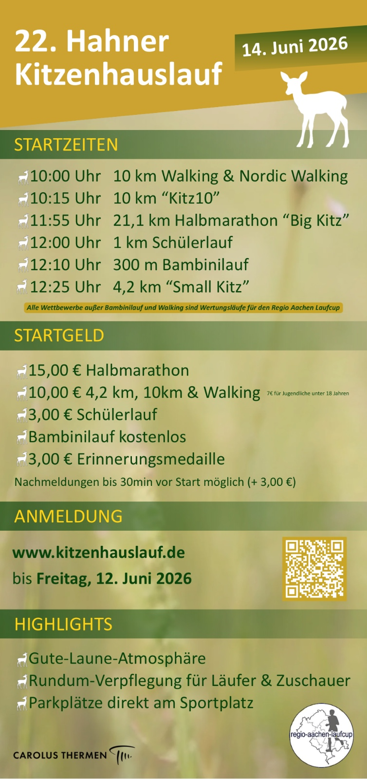 Alle Wettbewerbe außer Bambinilauf und Walking gehören zu den Wertungsläufen des Regio Aachen Laufcup.