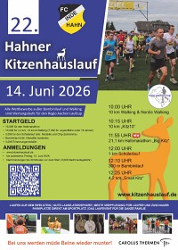 Anmeldung zum 22. Hahner Kitzenhauslauf gestartet1. März 2026Es sind noch knapp dreieinhalb Monate bis zum Startschuss des diesjährigen Hahner Kitzenhauslaufs, aber wie immer ist unsere Anmeldeseite frühzeitig freigeschaltet worden, damit interessierte Sportlerinnen und Sportler aller Alters- und Leistungsklassen schon jetzt ihre Teilnahme am Kitzenhauslauf 2026 buchen können.